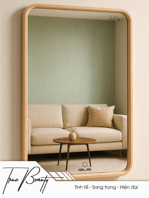 | Chất liệu viền | Gỗ Thông tự nhiên (Pine Wood), phủ PU mờ chống ẩm |