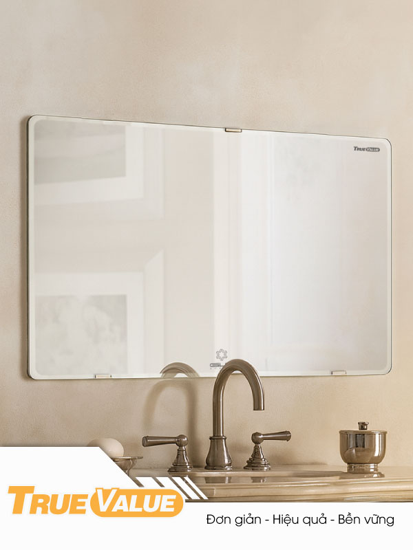 Phòng tắm: Gương trơn vát cạnh tạo cảm giác sáng và rộng cho không gian.
